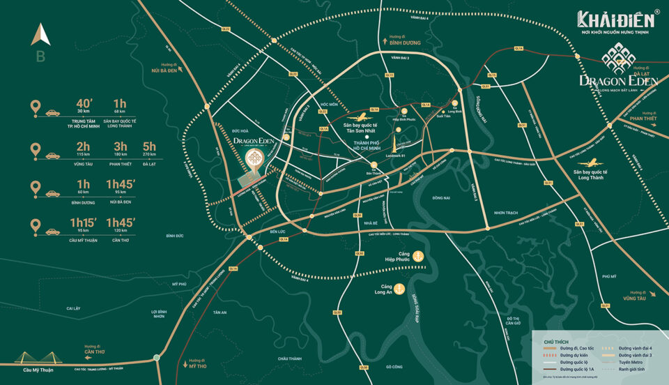 Ngoài ra, đường Võ Văn Kiệt nối dài 60m sẽ là con đường quan trọng, kết nối trực tiếp Bến Lức với trung tâm TP. HCM. Điều này không chỉ góp phần gia tăng giá trị bất động sản mà còn tạo cơ hội cho các nhà đầu tư thu hút thêm khách hàng đến với khu đô thị cao cấp Dragon Eden.