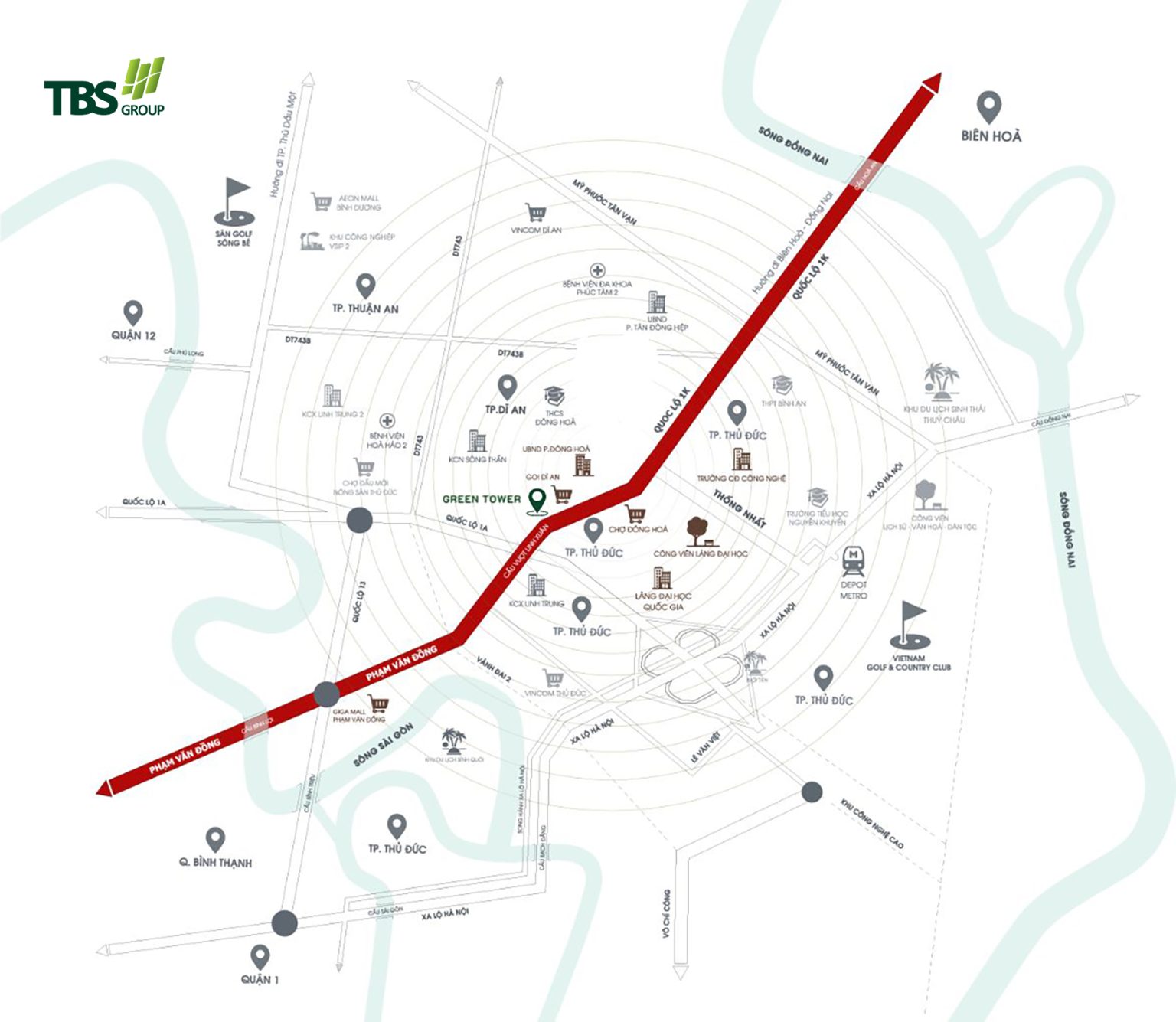 Vị trí của Green Skyline không chỉ là về địa lý mà còn về tiềm năng kinh tế, khi khu vực Dĩ An đang phát triển mạnh mẽ. Cư dân có thể tận hưởng cuộc sống đô thị mà không xa rời thiên nhiên, với các mảng xanh liền kề mang đến không khí trong lành. Điều này làm nổi bật ý tưởng “Kiến tạo không gian sống chuẩn quốc tế”, nơi mỗi ngày đều là cơ hội để tận hưởng sự tiện nghi. TBS Land đã khéo léo tích hợp yếu tố này vào dự án, biến Green Skyline thành lựa chọn hàng đầu cho những ai tìm kiếm sự kết hợp hoàn hảo giữa vị trí và chất lượng sống.